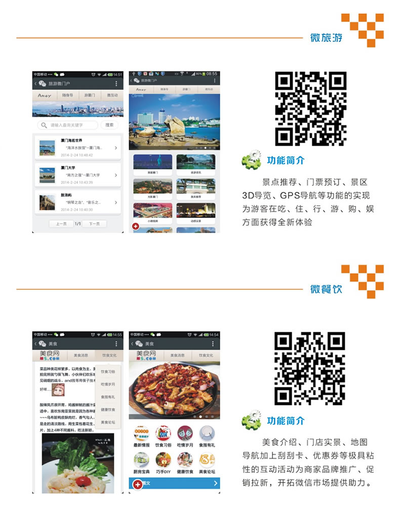 我司为多地行业用户、政府部门建设了微门户、微应用、微社区、微活动网站。这些微应用整合城市生活必须的各种信息和资源,集中以无线通信的形式提供给市民可以在手机上查询政务信息、本地新闻、天气预报、交通路况、商场信息以及民生相关的一切有用信息。